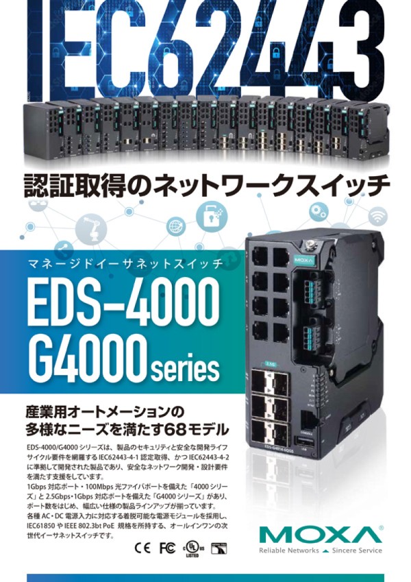 IEC62443-4-1認証取得のネットワークスイッチ EDS-4000/G4000シリーズ