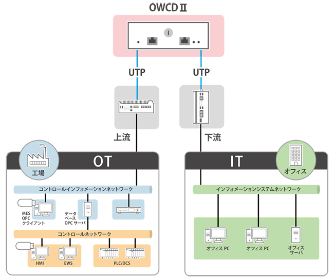 イーサネット通信を物理的に片方向に制限し、不正侵入ウイルス混入を確実に防ぐ「データダイオードOWCD」とNeousys Technologyの産業用PCを繋ぎ、工場などの制御システム(OT)とITシステム間の通信にセキュリティを担保する仕組みをご紹介