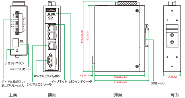| MGate 5109 | 1ポートModbus RTU/ASCII/TCP - DNP3シリアル/TCP/UDPゲートウェイ 動作温度:0~60℃ |