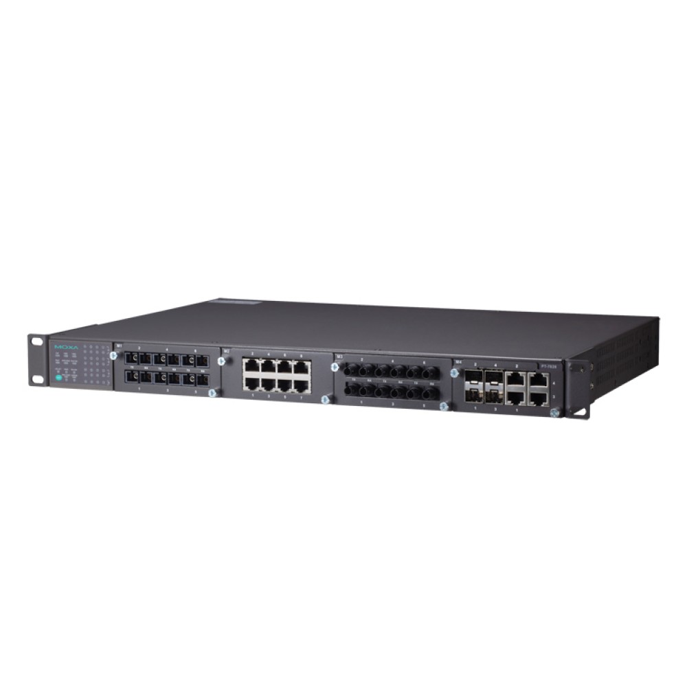 | PT-7828-F-48-HV | IEC 61850-3 Layer 3モジュラーマネージドラックマウントスイッチ 3スロットファーストイーサネットモジュール、1スロットギガビットイーサネットモジュール、最大24+4ポート、フロントパネルケーブリング、2アイソレート電源(48VDCおよび88-300VDCまたは85-264VAC)、-40~85℃動作温度 |