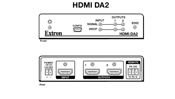 HDMI DA2は、HDMIの映像およびエンベデッドマルチチャンネルデジタルオーディオ用の1入力 2出力HDMI分配器(デストリビューションアンプ)です。HDMI規格に準拠し、最大データレート6.75Gbps、12ビットディープカラー、3D、リップシンク、HDロスレスオーディオフォーマットに対応しています。HDCPに準拠し解像度1080p/60のHDコンポーネントビデオ信号と高解像度最大1920x1200のコンピュータービデオ信号に対応しています。更に、HDMI DA2は、Extron独自のEDID MinderとKey Minder技術を搭載しています。EDID Minderは、接続機器間でEDID通信を維持します。また、Key Minderはすべての機器間でHDCPの認証を継続して行いソース機器からのコンテンツを同時に2台のディスプレイに出力することが可能です。HDMI DA2は、HDMI信号を2台のディスプレイに出力するアプリケーションに最適です。