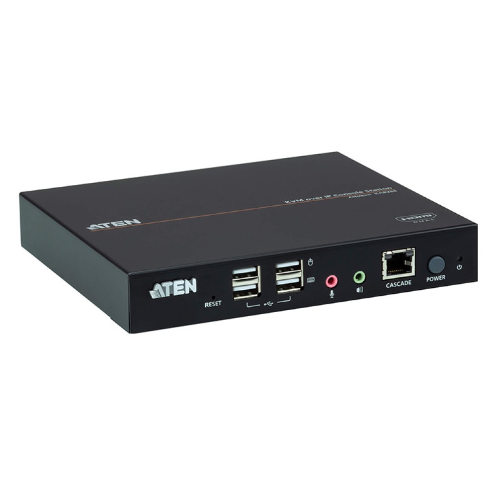 - PCまたはラップトップの代わりとなる独立型コンソール。ユーザーはATEN製KVM over IPスイッチに遠隔からアクセスし制御が可能(1)